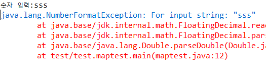 - 이 코드를 실행하고 숫자가 아닌 문자를 입력하게 되면 오류가 발생