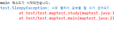 throw new SleepyException("너무 졸려서 공부를 할 수가 없어요!");