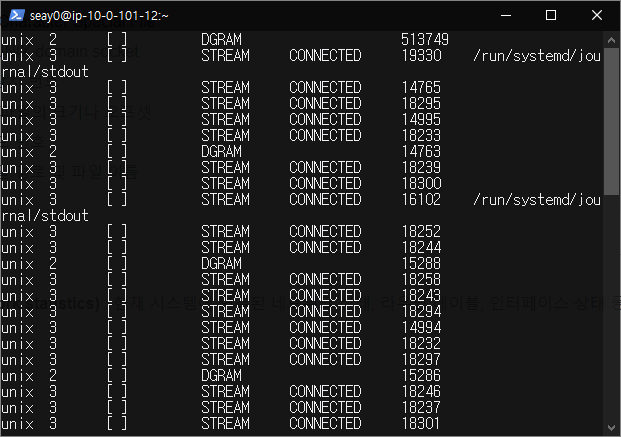 - netstat (network statistics) : 현재 시스템에 연결된 네트워크 상태, 라우팅 테이블, 인터페이스 상태 등을 볼 수 있다.