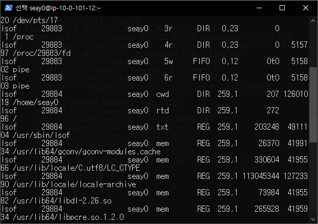 - lsof (list open files) : 시스템에서 열려있는 모든 파일에 대한 정보를 출력한다.