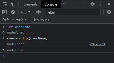 - undefined 가 나타나는 이유는 콘솔 창에서 실행한 명령이 반환하는 값이 없기 때문이다.