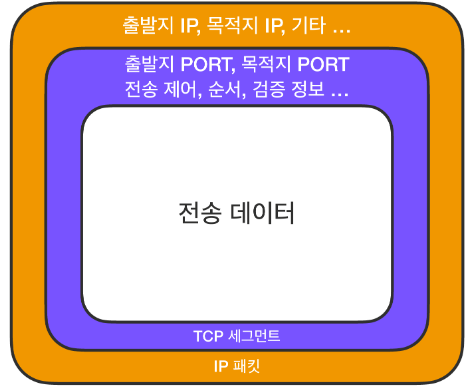 - 메시지 정보를 포함한 TCP 세그먼트가 먼저 생성되고, TCP 데이터를 포함한 IP 패킷이 생성된다.