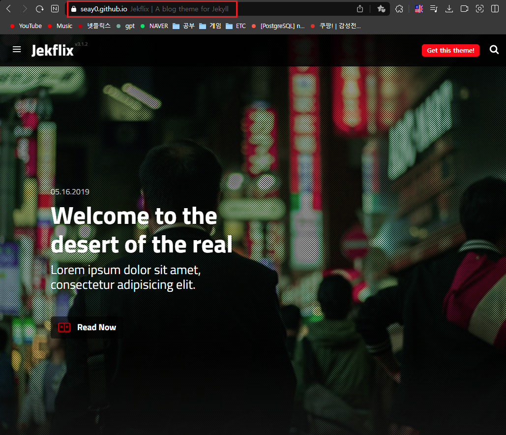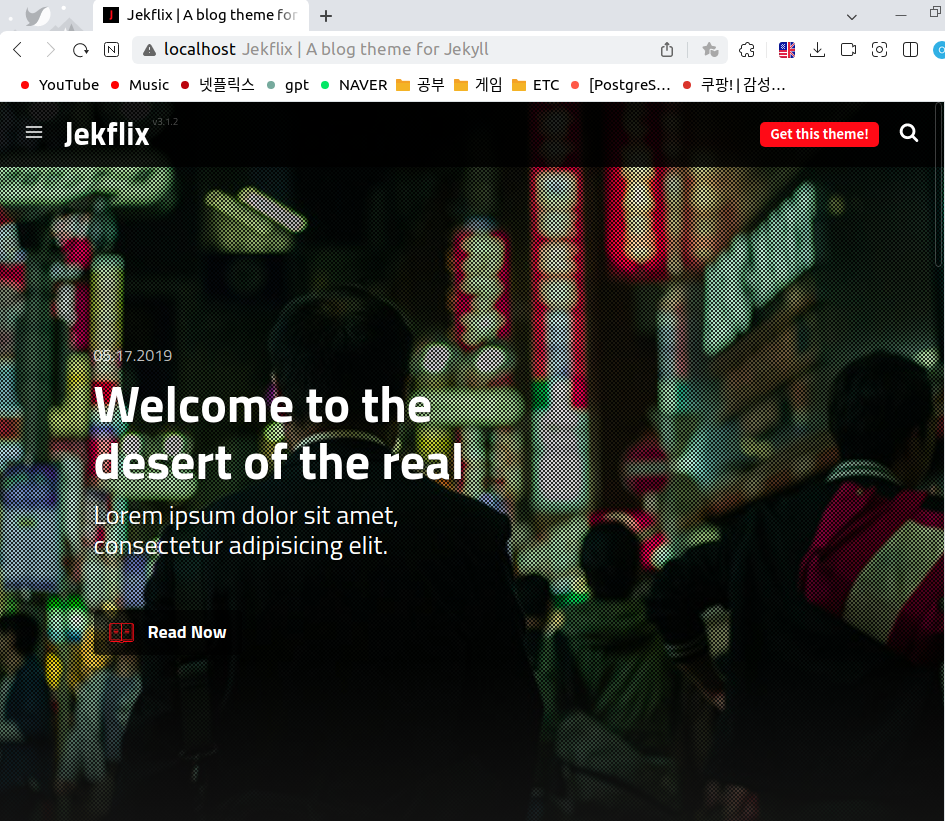 위와 같이 설치가 완료되면, 상단에 올린 깃헙의 jekflix 링크로 접속해보자!