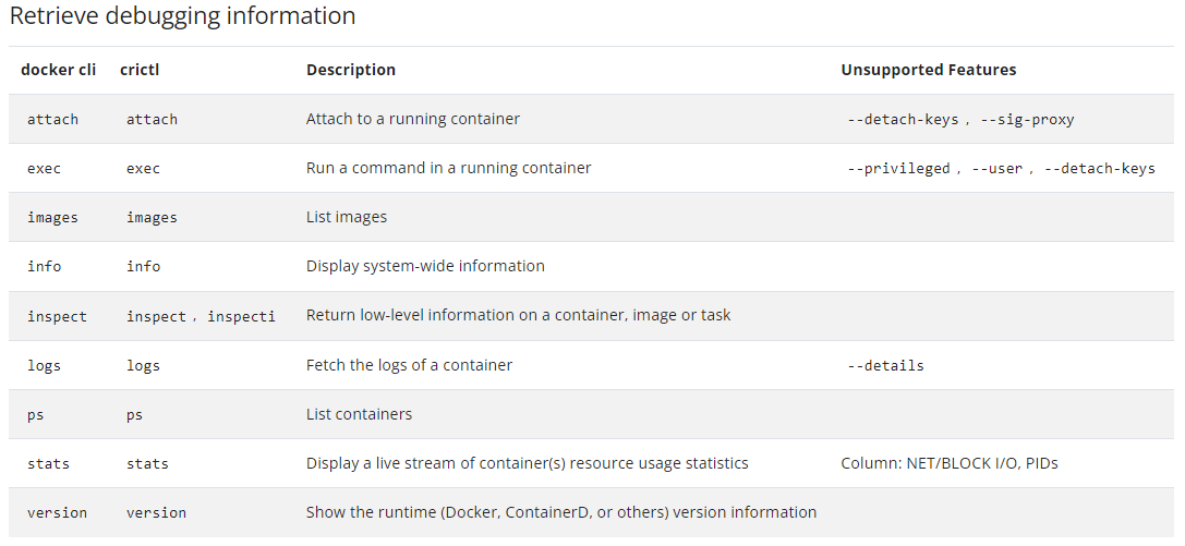 - cri 호환이 가능한 컨테이너 런타임과 상호작용하거나, 디버깅 목적으로 사용된다.